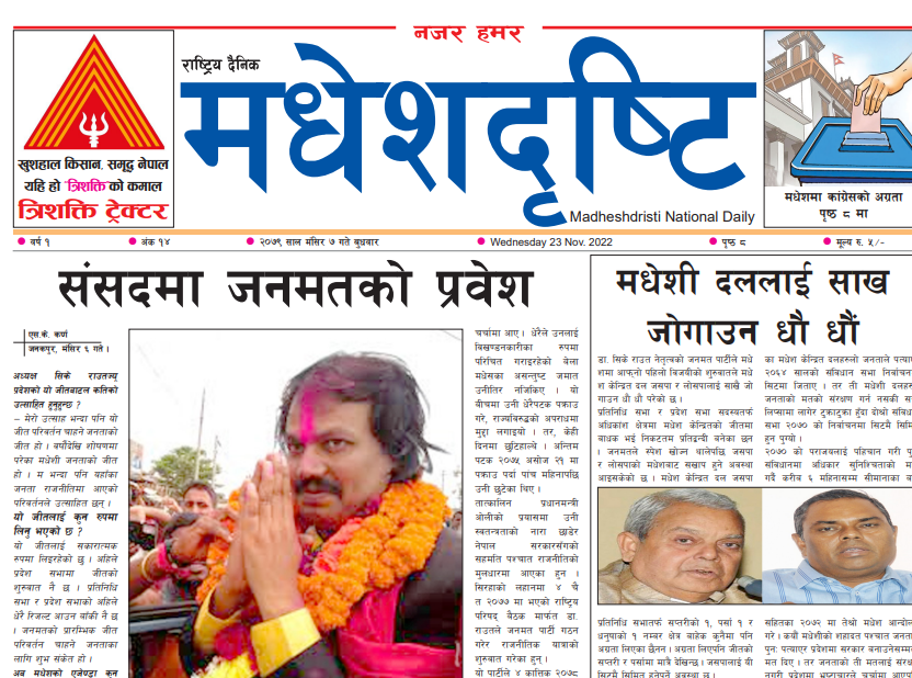 २०७९ मंसिर ७ गते बुधबार मधेशदृष्टि पत्रिका