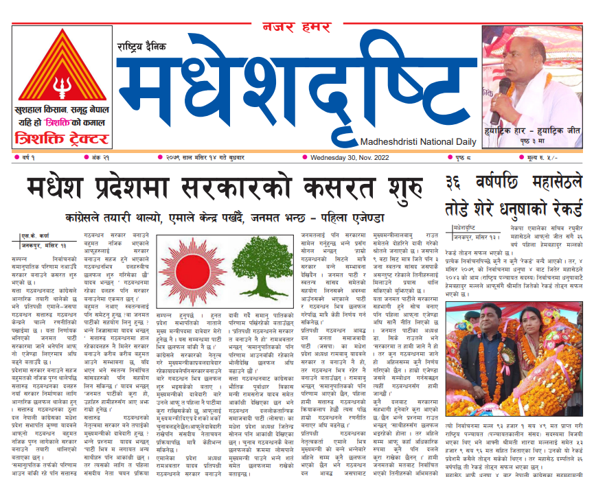 २०७९ मंसिर १४ गते बुधबार मधेशदृष्टि पत्रिका