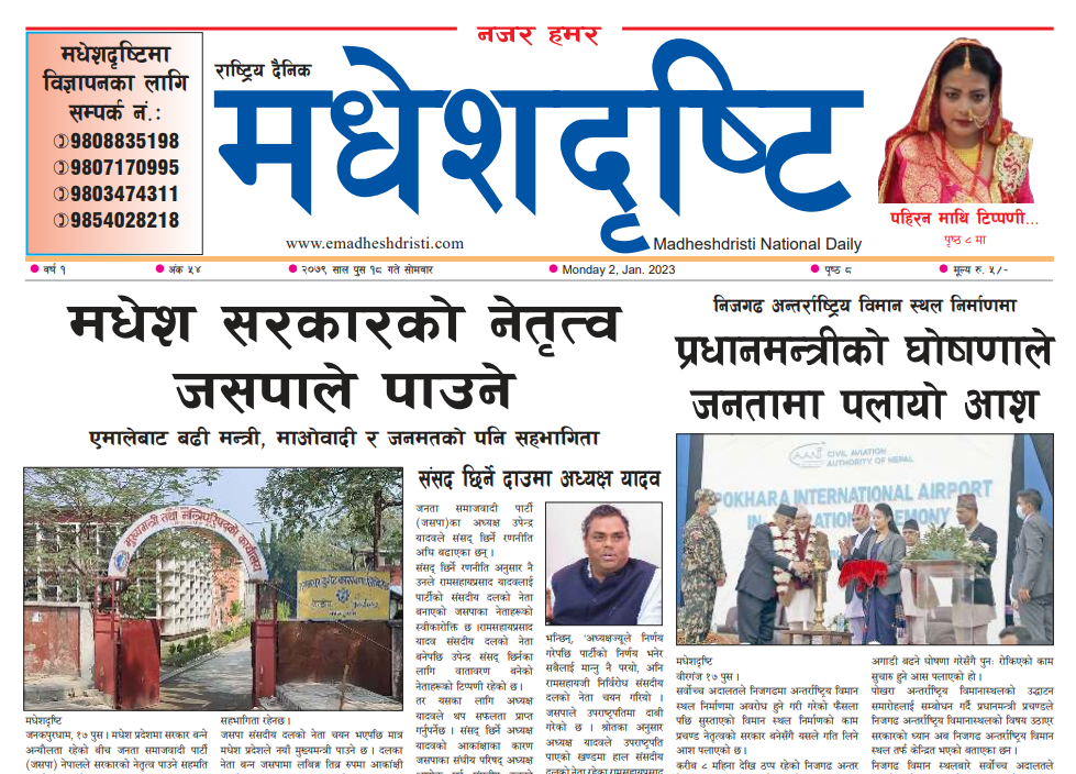 २०७९ पुष १८ गते सोमबार मधेशदृष्टि पत्रिका