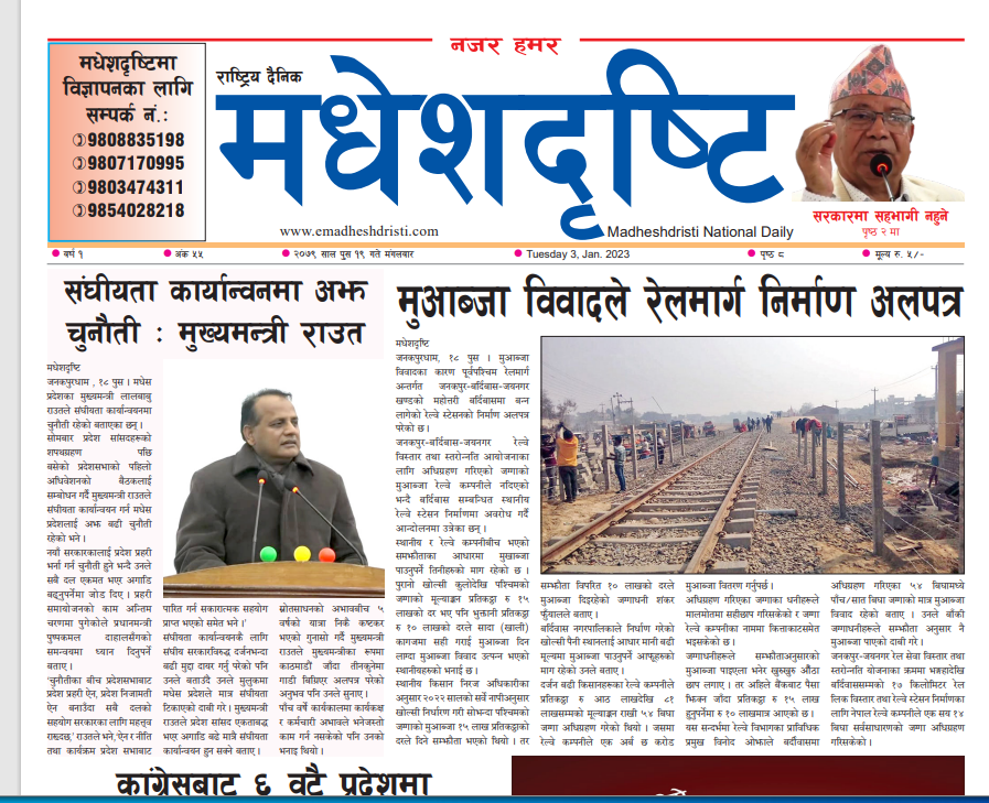 २०७९ पुष १९ गते मंगलबार मधेशदृष्टि पत्रिका
