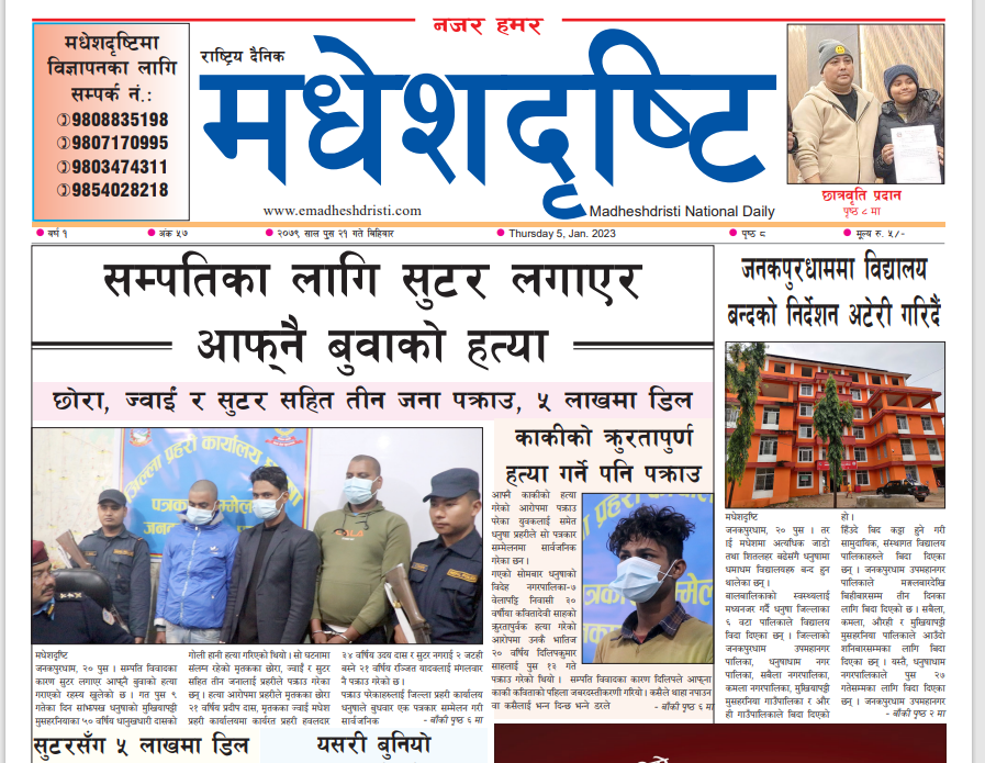२०७९ पुष २१ गते बिहिबार मधेशदृष्टि पत्रिका