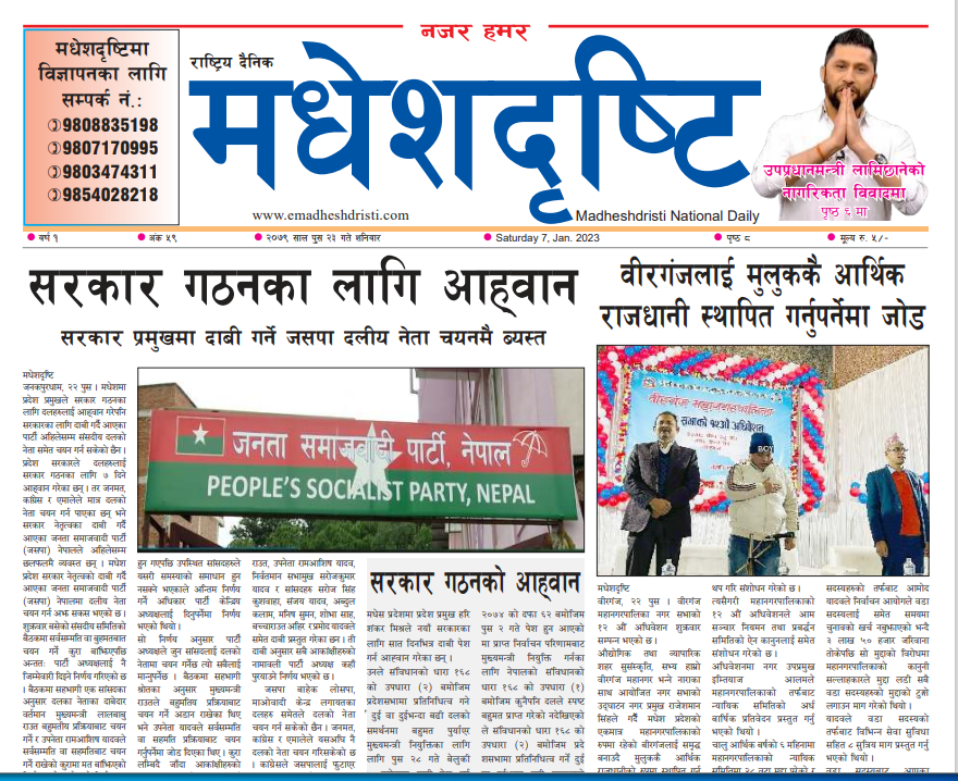 २०७९ पुष २३ गते शनिबार मधेशदृष्टि पत्रिका