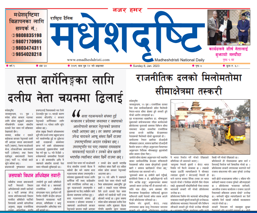 २०७९ पुष २४ गते आइतबार मधेशदृष्टि पत्रिका