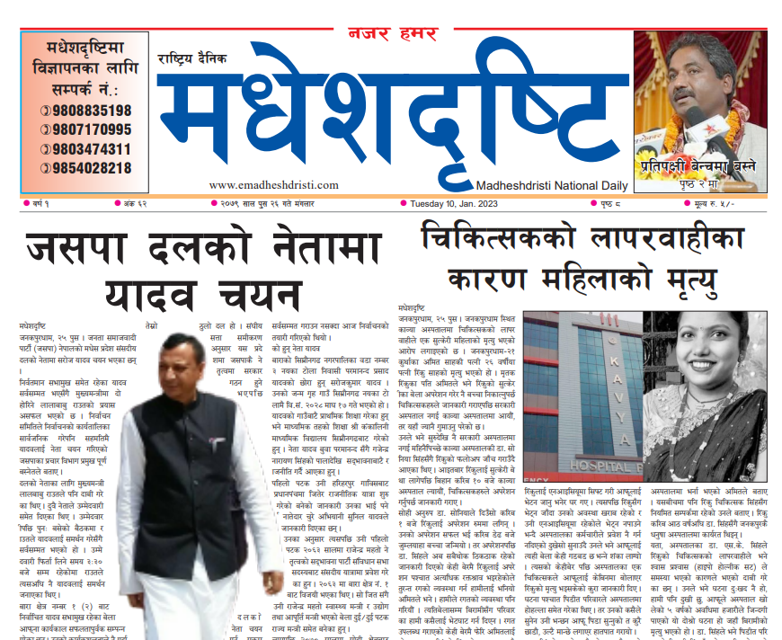 २०७९ पुष २६ गते मंगलबार मधेशदृष्टि पत्रिका
