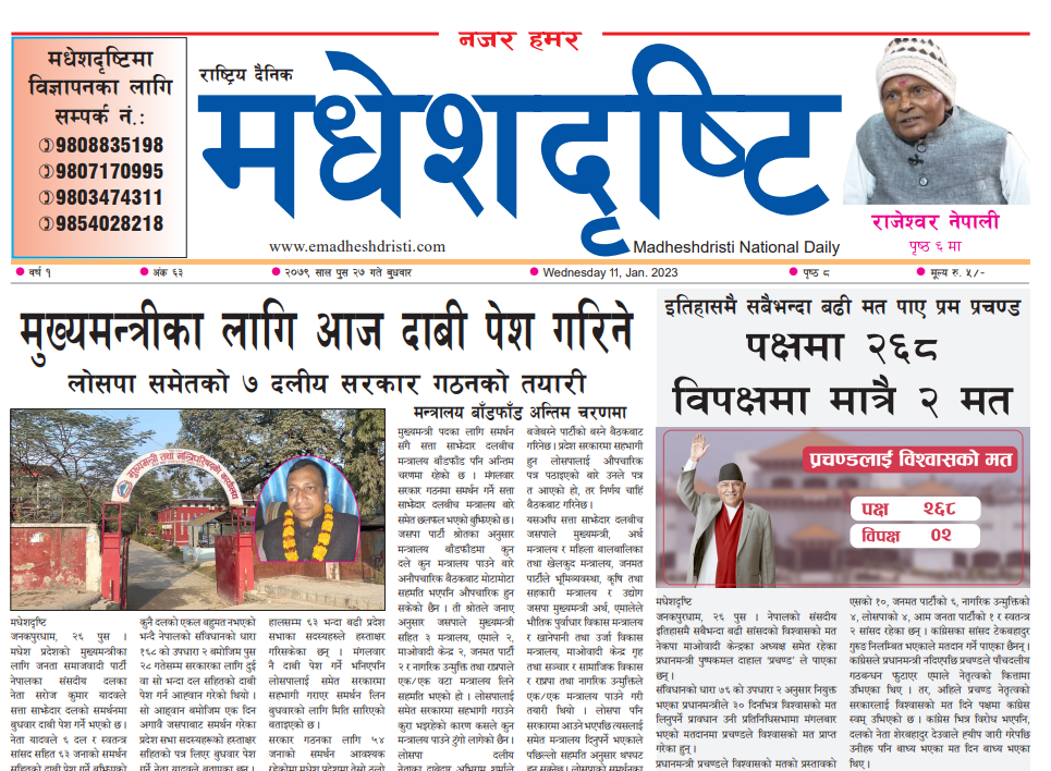 २०७९ पुष २७ गते बुधबार मधेशदृष्टि पत्रिका