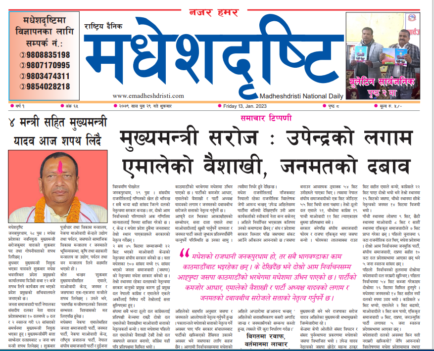 २०७९ पुष २९ गते शुक्रबार मधेशदृष्टि पत्रिका