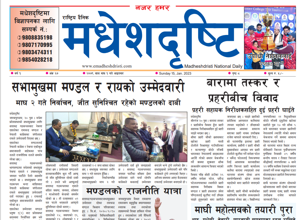 २०७९ माघ १ गते आइतबार मधेशदृष्टि पत्रिका