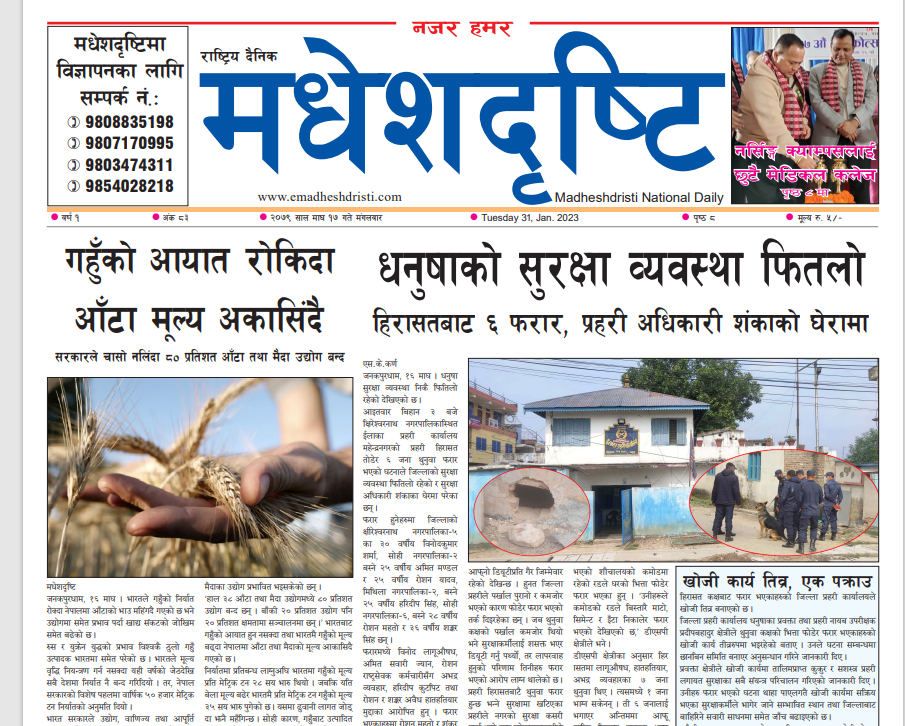 २०७९ माघ १७ मंगलबार मधेशदृष्टि पत्रिका