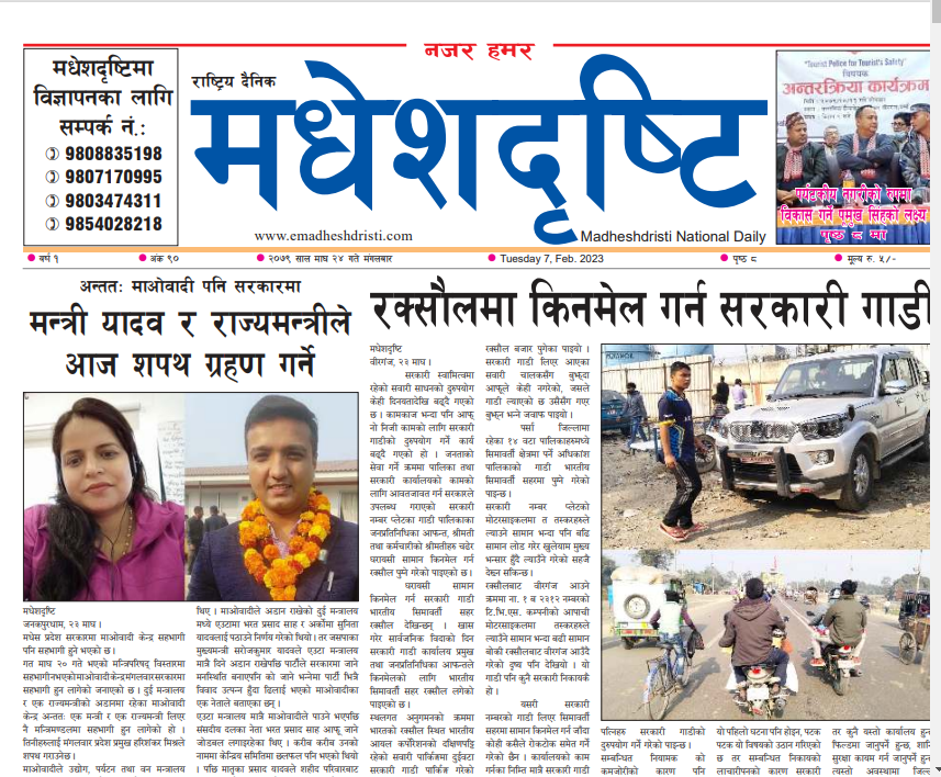 २०७९ माघ २४ गते मंगलबार मधेशदृष्टि पत्रिका