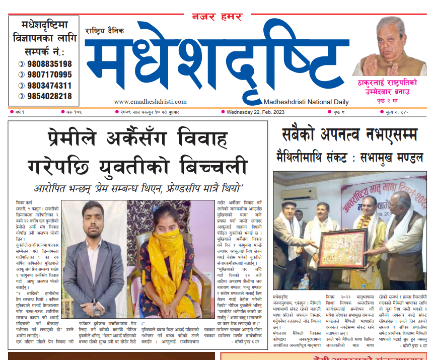 २०७९ फाल्गुन १० गते बुधबार मधेशदृष्टि पत्रिका