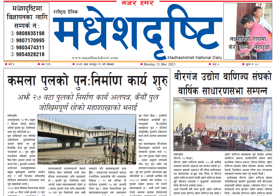 २०७९ फाल्गुन २९ गते सोमबार मधेशदृष्टि पत्रिका