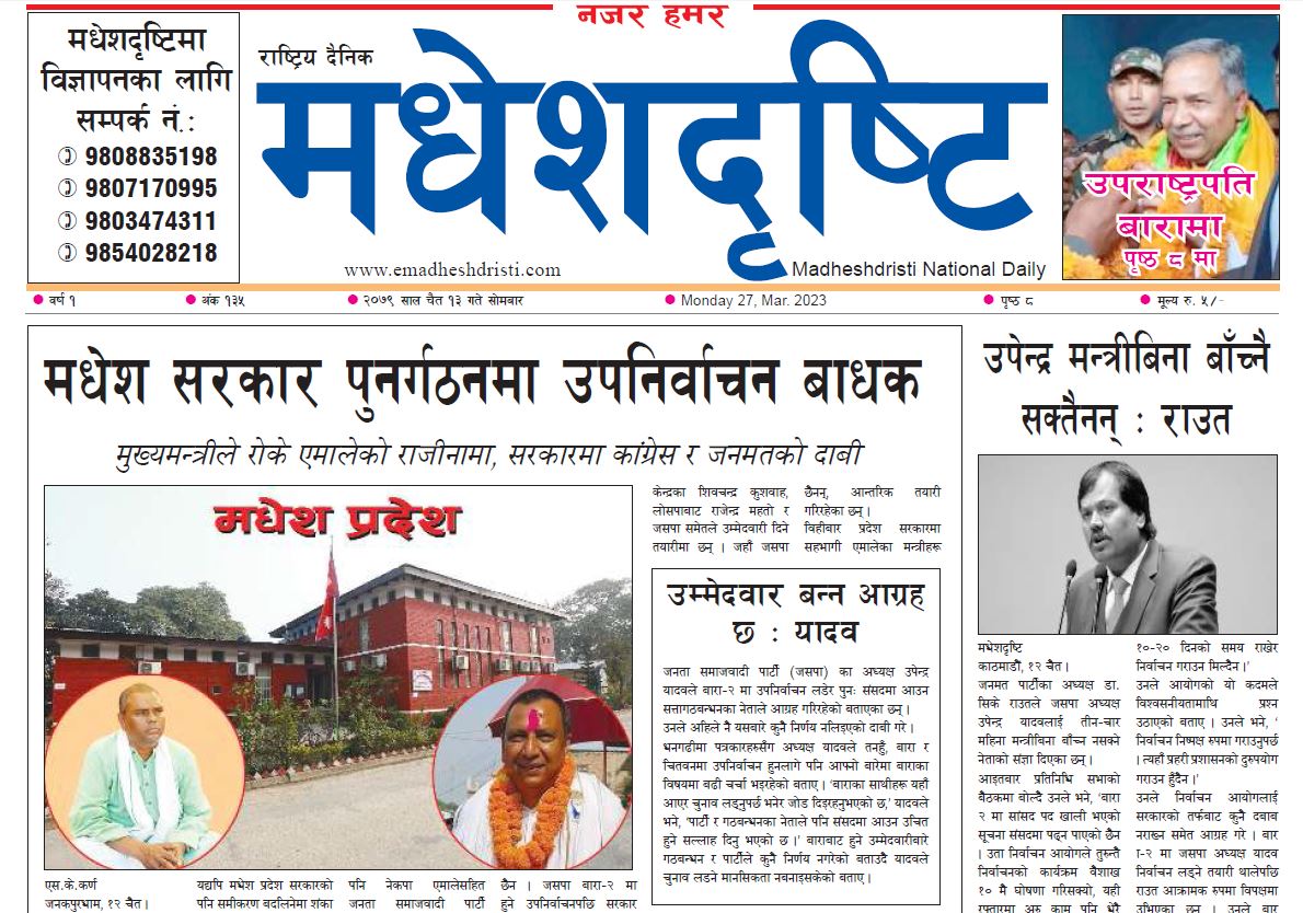 २०७९ चैत्र १३ गते सोमबार मधेशदृष्टि पत्रिका