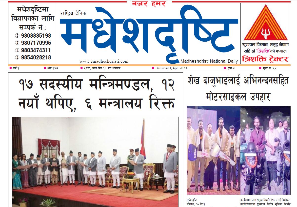 २०७९ चैत्र १८ गते शनिबार मधेशदृष्टि पत्रिका