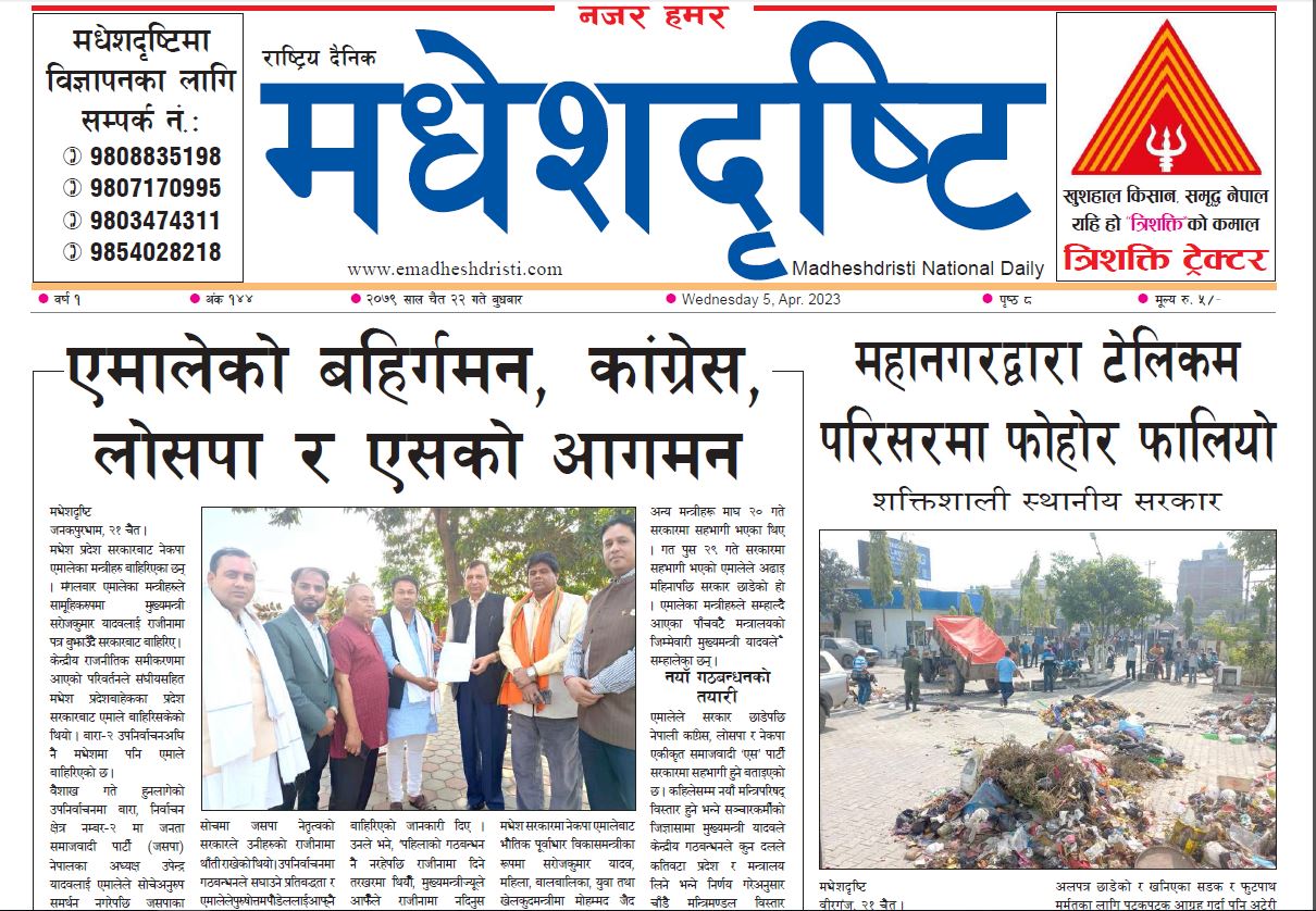 २०७९ चैत्र २२ गते बुधबार मधेशदृष्टि पत्रिका