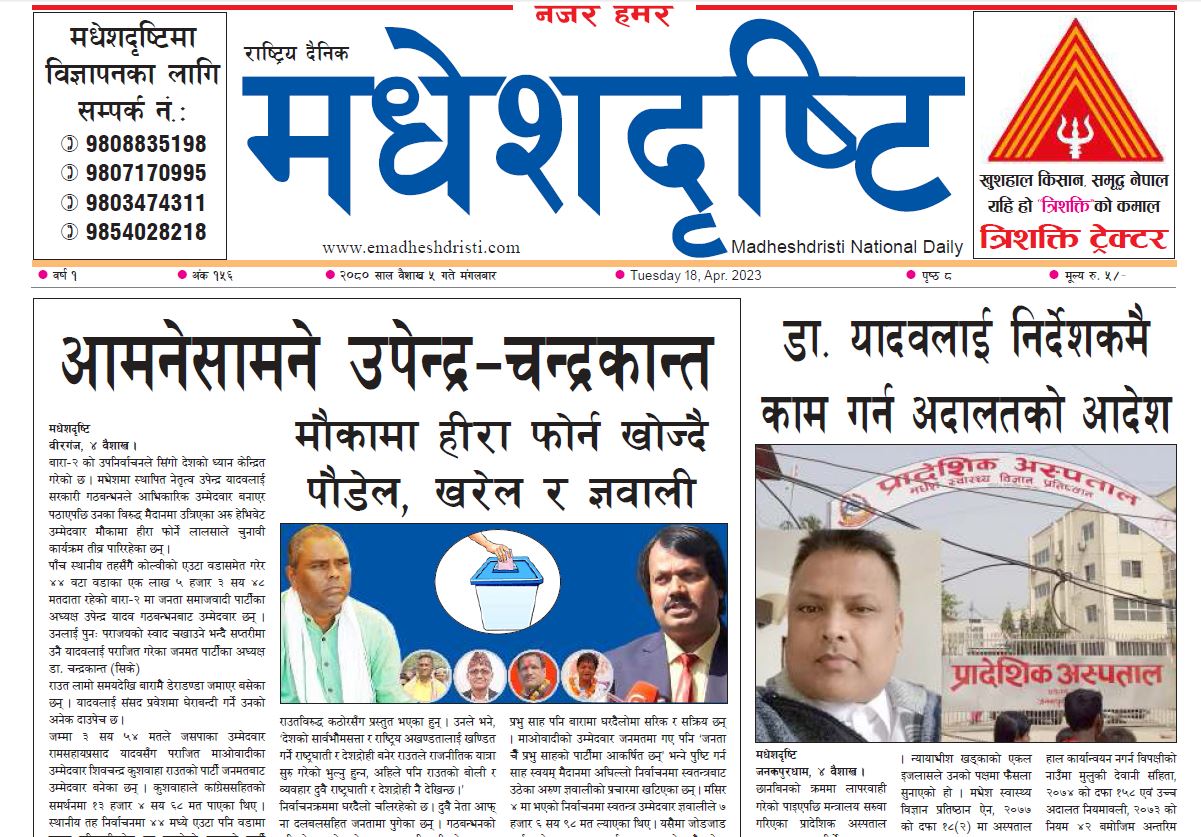 २०८० वैशाख ०५ गते मंगलबार मधेशदृष्टि पत्रिका