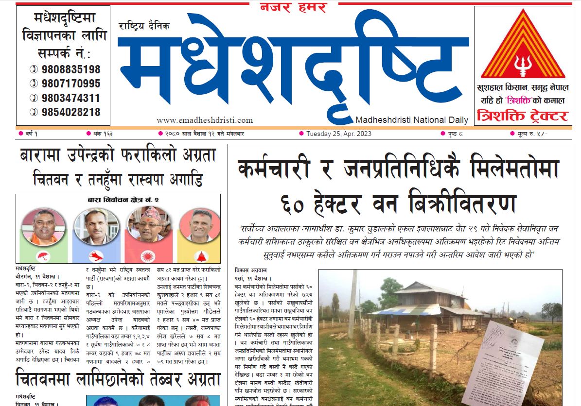 २०८० वैशाख १२ गते मंगलबार मधेशदृष्टि पत्रिका