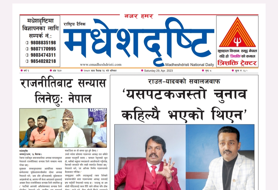 २०८० वैशाख १६ गते शनिबार मधेशदृष्टि पत्रिका