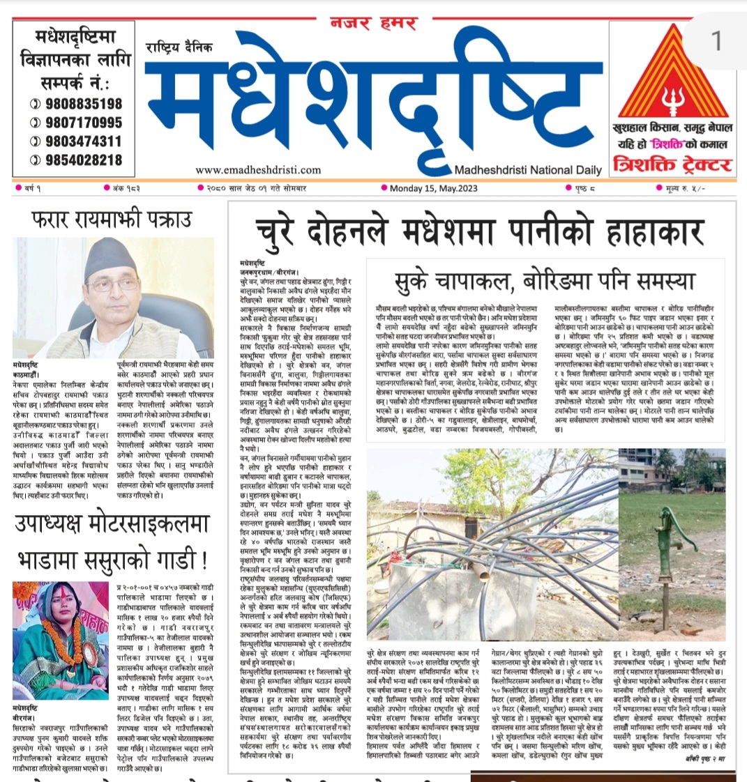 २०८० जेठ १ गतेकाे मधेशदृष्टि दैनिक