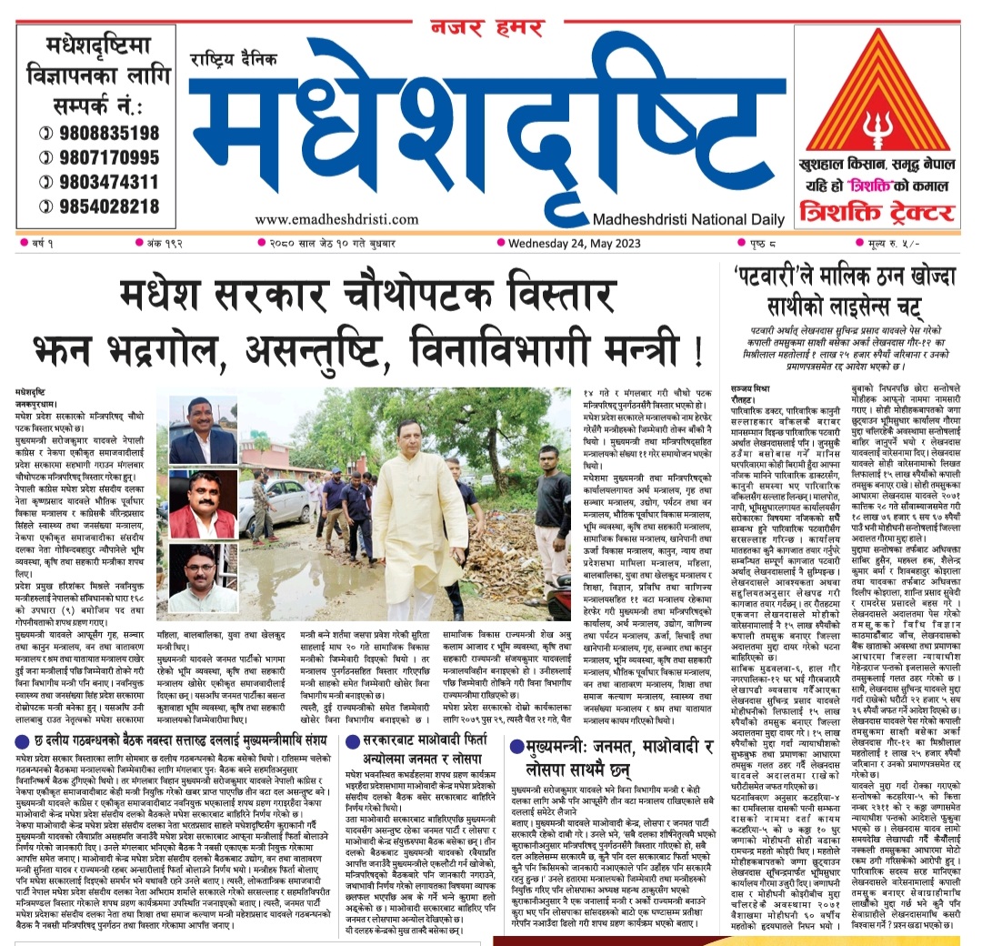 २०८० जेठ १० गते बुधबारकाे मधेशदृष्टि दैनिक