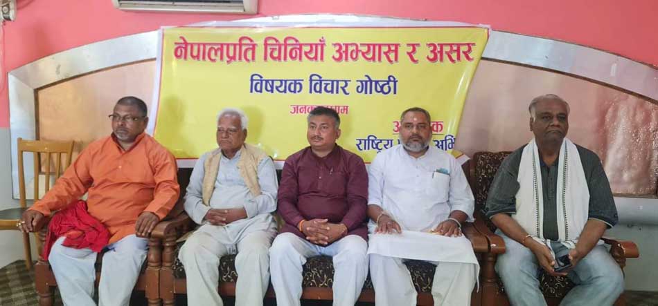 कार्यक्रममा धर्मिक अभियन्ता भोगेन्द्र लाल कर्ण, मारवाड़ी सेवा समितिका अध्यक्ष निर्मल चौधरी, डा. वीरेन्द्र कुमार, प्राध्यापक बालकेश्वर ठाकुर, वन्दना पाण्डेयलगायतले चीनले नेपाललाई ऋणजालमा फसाई श्रीलंका बनाउन खोजिरहेको भन्दै सतर्क हुन जोड दिए ।