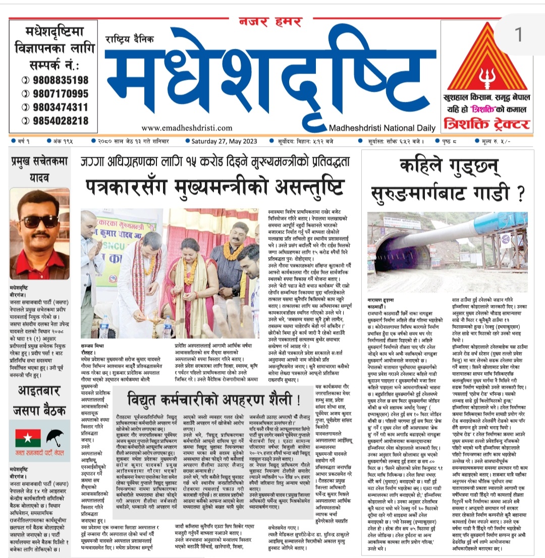 २०८० जेठ १३ गते शनिबारकाे मधेशदृष्टि दैनिक