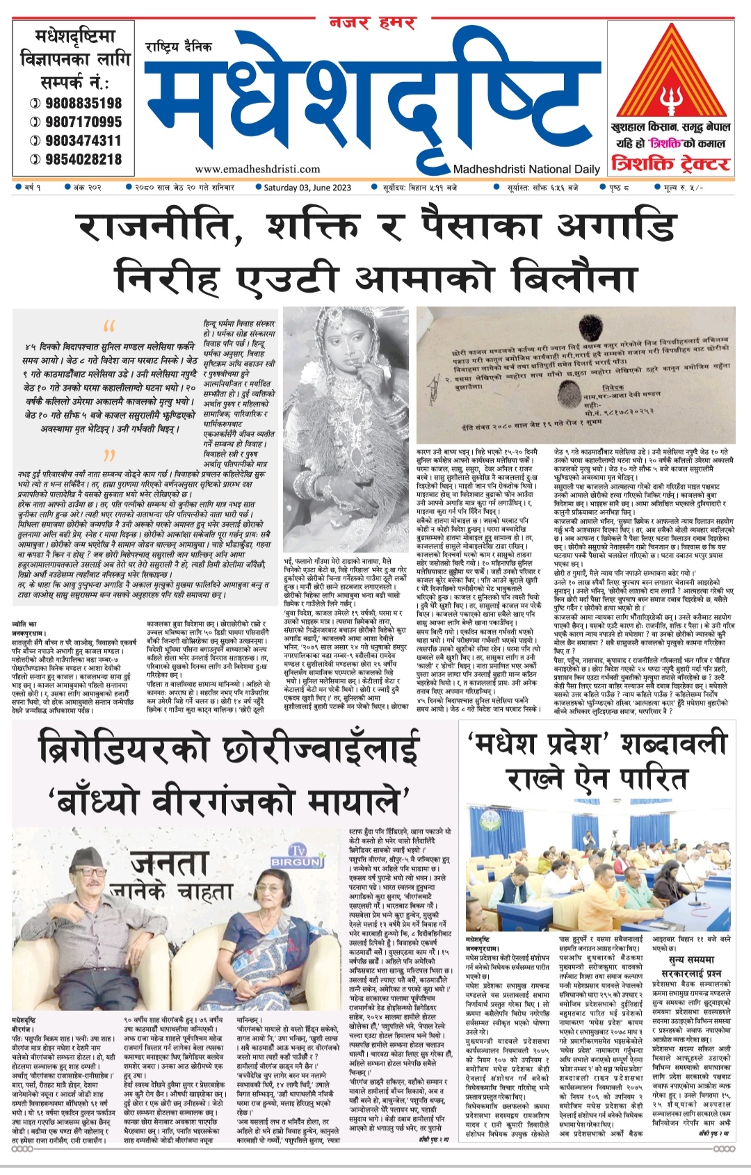 २०८० जेठ २० गते शनिबारकाे मधेशदृष्टि दैनिक
