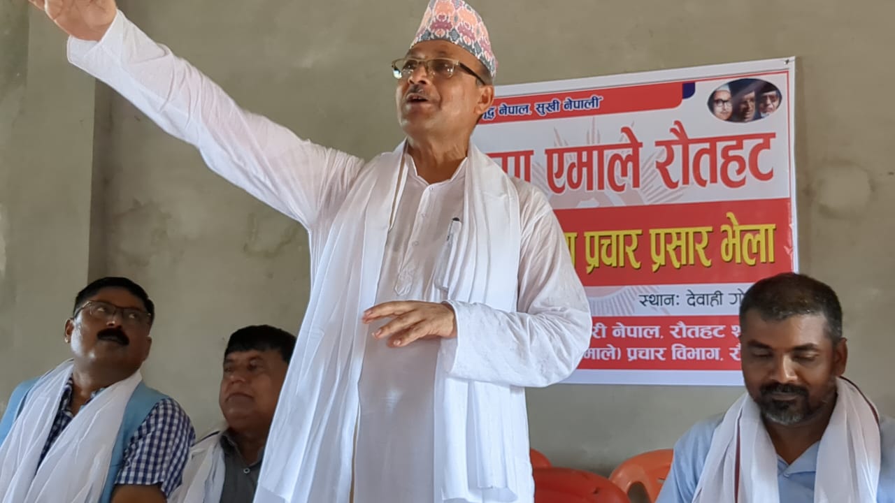 उनले भने, ‘नेकपा फुटेपछि पहिले माधव नेपाल अल्गिए, रौतहटको हकमा प्रभू साहले पार्टी छोडे, गत संसदीय निर्वाचनमा जिल्लाको दुईवटा निर्वाचन क्षेत्रमा मात्र प्रतिनिधिसभाको एमालेको उमेदवार हुँदा पनि समानुपातिक तर्फ ३४ हजार मत आउँनु ठूलो उपलब्धी हाे ।’