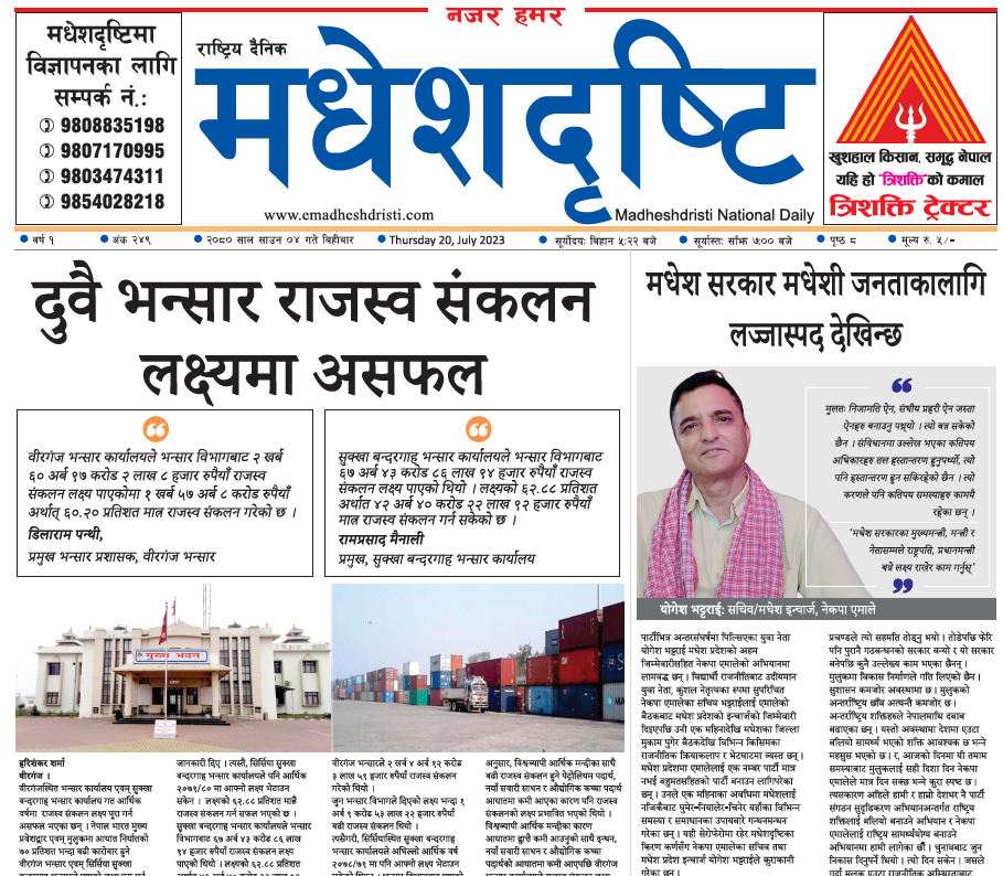 २०८० साउन ४ गतेको मधेशदृष्टि दैनिक