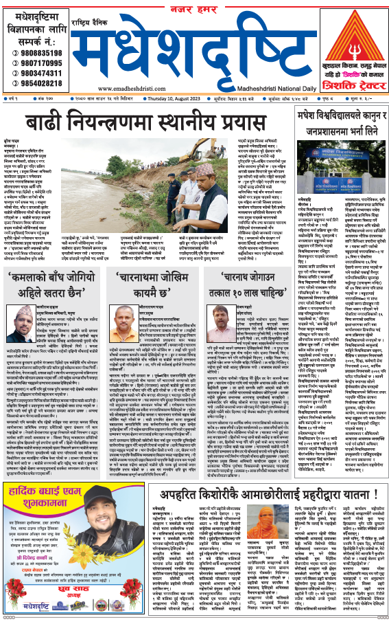 २०८० साउन २५ गतेको मधेशदृष्टि दैनिक