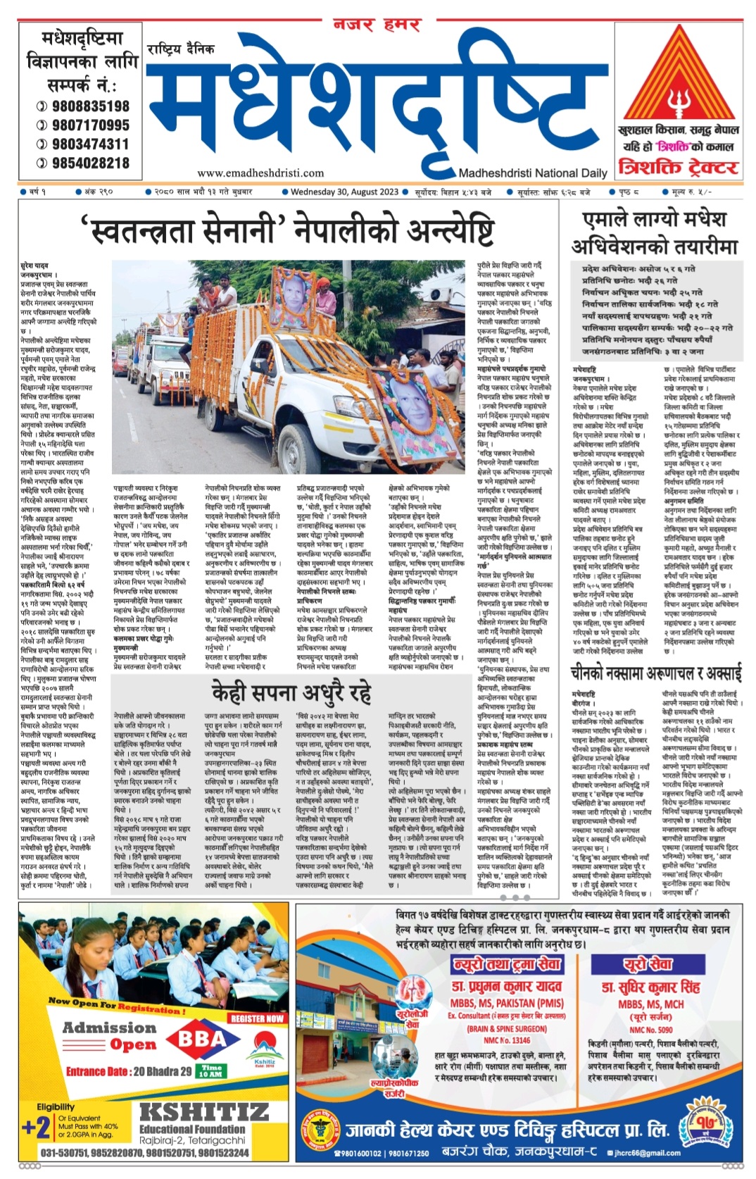 २०८० भदाै १३ गतेकाे मधेशदृष्टि दैनिक