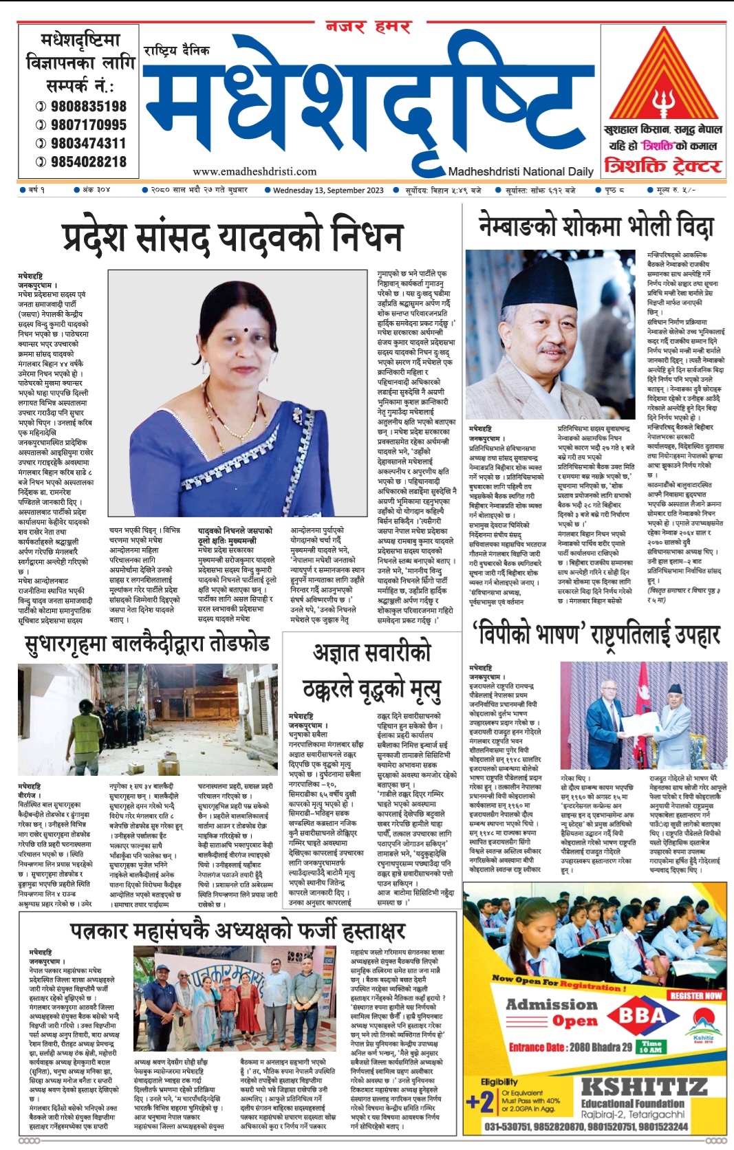 २०८० भदौ २७ गतेको मधेशदृष्टि दैनिक