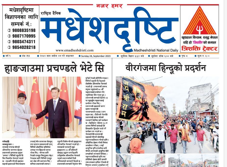 २०८० असोज ७ गतेको मधेशदृष्टि दैनिक