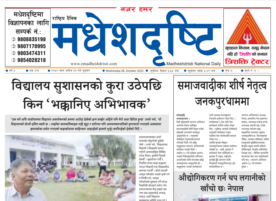 २०८० असोज १७ गतेको मधेशदृष्टि दैनिक