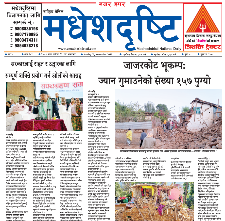२०८० कात्तिक १९ गतेको मधेशदृष्टि दैनिक