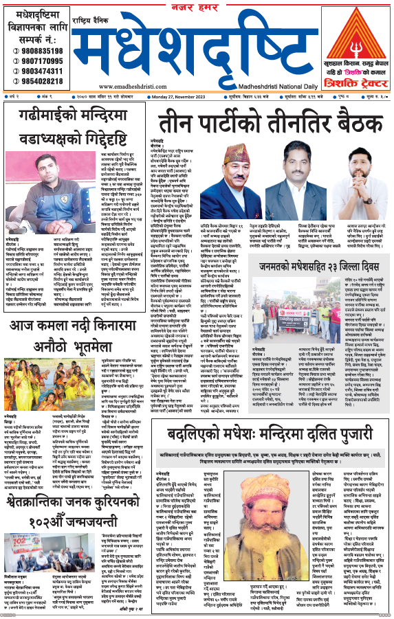 २०८० मंसिर ११ गतेको मधेशदृष्टि दैनिक