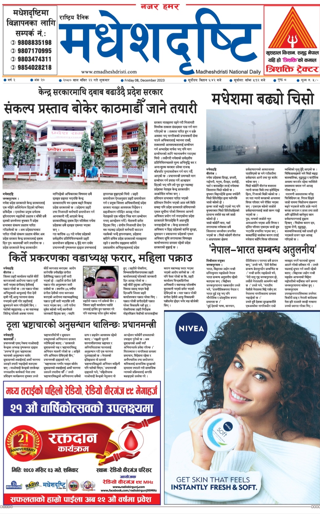 २०८० मंसिर २२ गतेकाे मधेशदृष्टि दैनिक