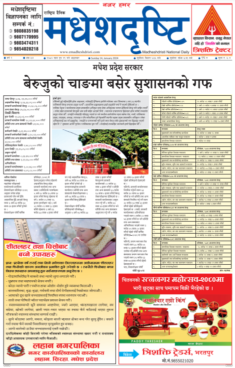 २०८० पुस २९ गतेको मधेशदृष्टि दैनिक