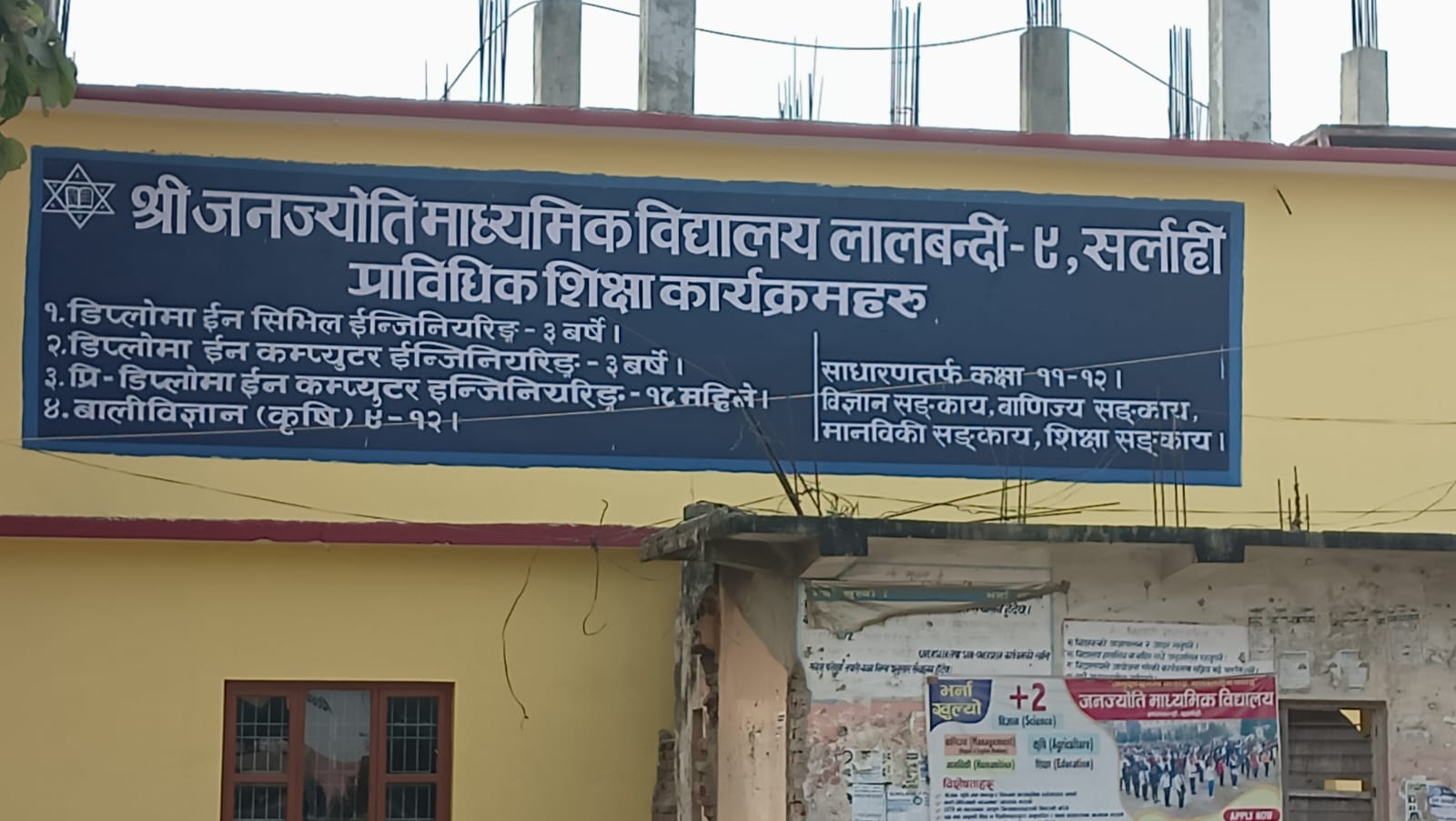 सर्लाहीको लालबन्दी नगरपालिका–९ स्थित बस्तीपुरमा रहेको जनज्योती माविले विद्यार्थीहरुबाट अवैद्य तरिकाले रकम असुली गरेको पाइएको छ । जनज्योती माविले कुनै रसिद विना करिब ६५ जना विद्यार्थीहरुबाट प्रति विद्यार्थी पाँच सय रुपैयाँ असुलेको हो । विभिन्न कारणवस नियमित हुने परिक्षामा सहभागी हुन नपाएका तथा विद्यालयमा नियमति उपस्थित हुन नसकेका विद्यार्थीहरुबाट परिक्षा सञ्चालन र कपिचेक जाँचको बाहनामा रसिद नै नदिई प्रति विद्यार्थी पाँच सय रुपैयाँका दरले रकम असुलेका प्रमाण प्राप्त भएको छ ।