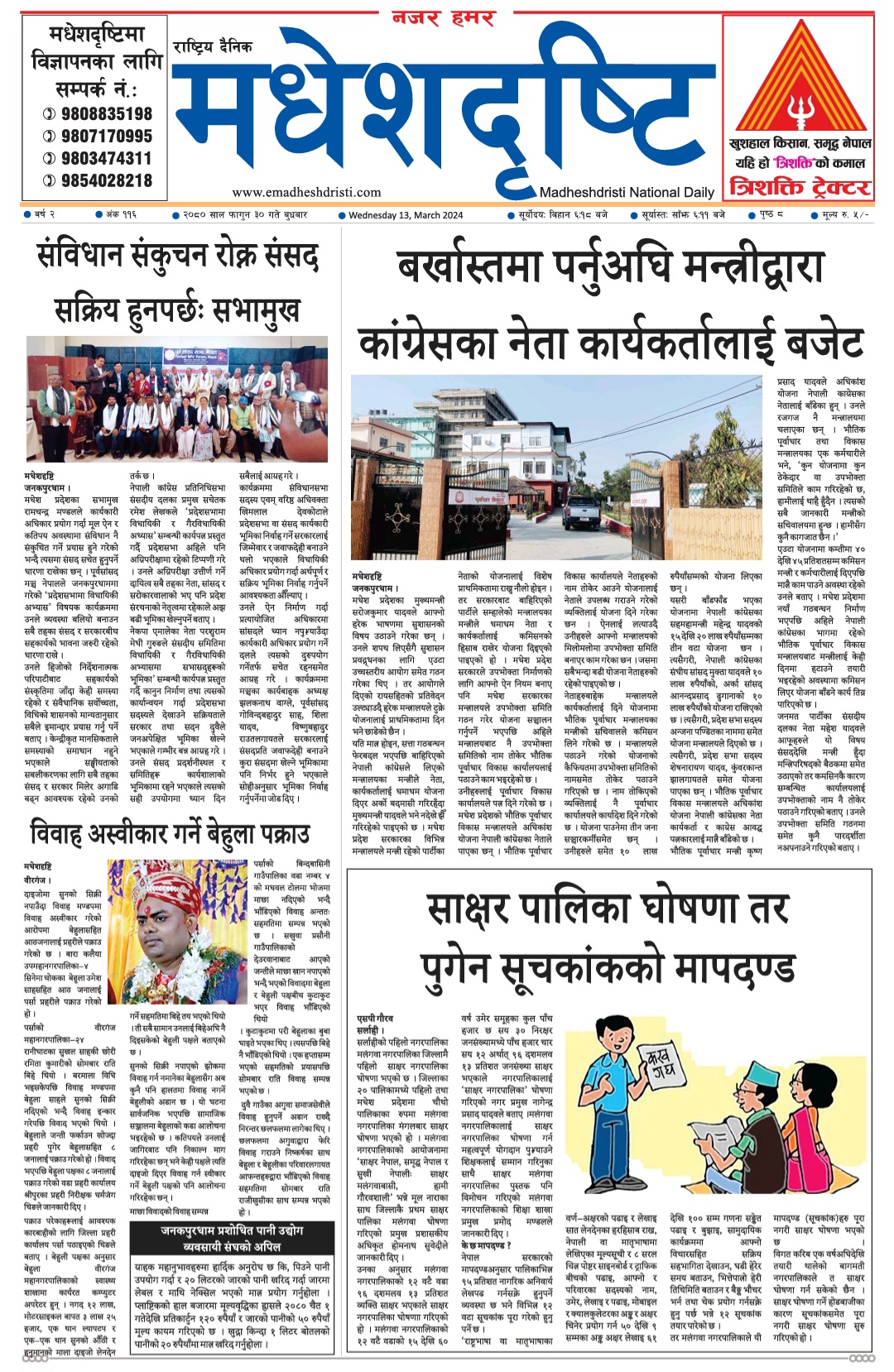 २०८० फागुन ३० गतेकाे मधेशदृष्टि दैनिक