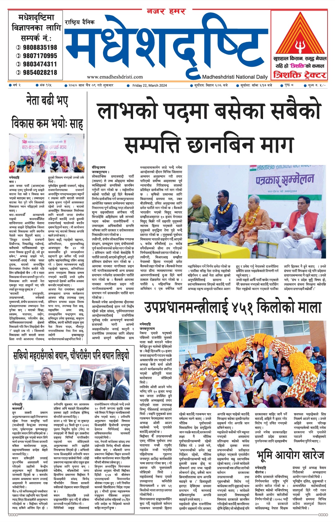 २०८० चैत ९ गतेकाे मधेशदृष्टि दैनिक