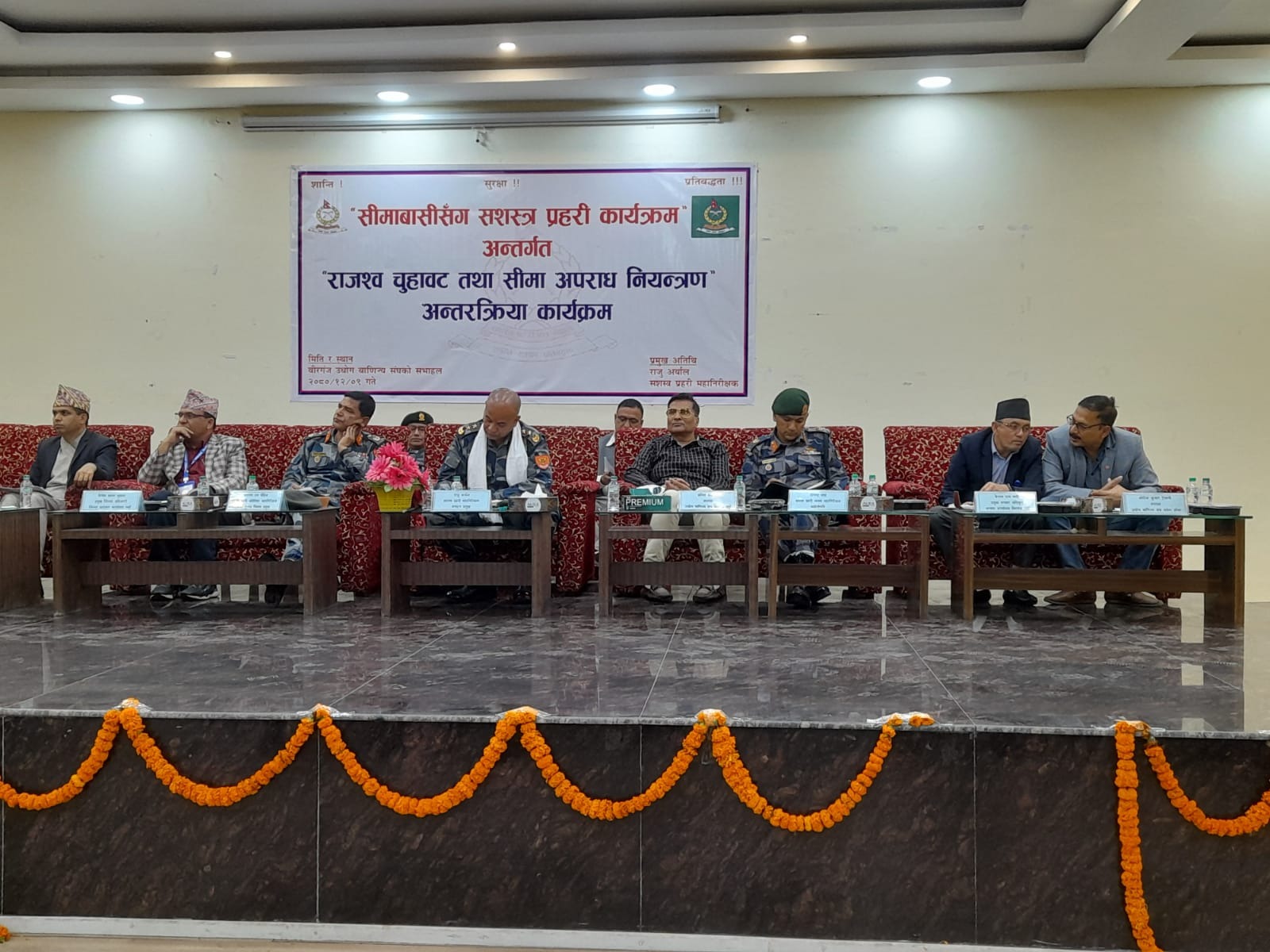 अन्तरक्रिया कार्यक्रममा सशस्त्र प्रहरी अतिरिक्त महानिरीक्षक नारायण दत्त पौडेलले सीमा क्षेत्रमा हुने अपराध नियन्त्रणका लागि सशस्त्र प्रहरीले विगतदेखि नै निरन्तर रूपमा विभिन्न रणनीति अप्नाएर काम गरिएको बताए । सीमा क्षेत्रमा हुने अपराधलाई नियन्त्रण गर्नका लागि सशस्त्र प्रहरीले स्थानीय जनतासँगको सहकार्यमा विभिन्न कार्यक्रम गर्दै आइरहेको जानकारी दिए । त्यस्तै, कार्यक्रममा सशस्त्र प्रहरी नायब महानिरीक्षक दिपेन्द्र साहले राजश्व चुहावट कम गर्न सके राजश्व संकलनमा सुधार हुने उल्लेख गर्दै त्यसका लागि सीमा क्षेत्रका जनता र उद्योगी तथा व्यापारीको सहयोगी भूमिका अपेक्षा गरे ।