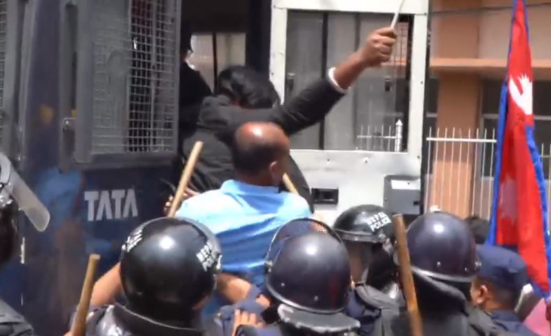 भन्सार विभाग घेराउमा उत्रिएका प्रभु साह नेतृत्वको आम जनता पार्टीका नेता कार्यकर्ता र प्रहरीबीच झडप भएको छ । त्रिपुरेश्वरस्थित भन्सार विभागको घेराउमा उत्रिएका आजपाका कार्यकर्ताहरुलाई प्रहरीले धरपकड गर्ने क्रममा झडप भएको हो । झडपका क्रममा आजपाका एक दर्जन बढी कार्यकर्ताहरु पक्राउ परेका छन् ।