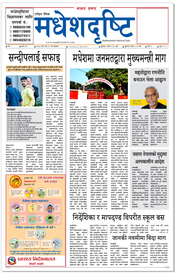 २०८१ जेठ ३ गतेकाे मधेशदृष्टि दैनिक