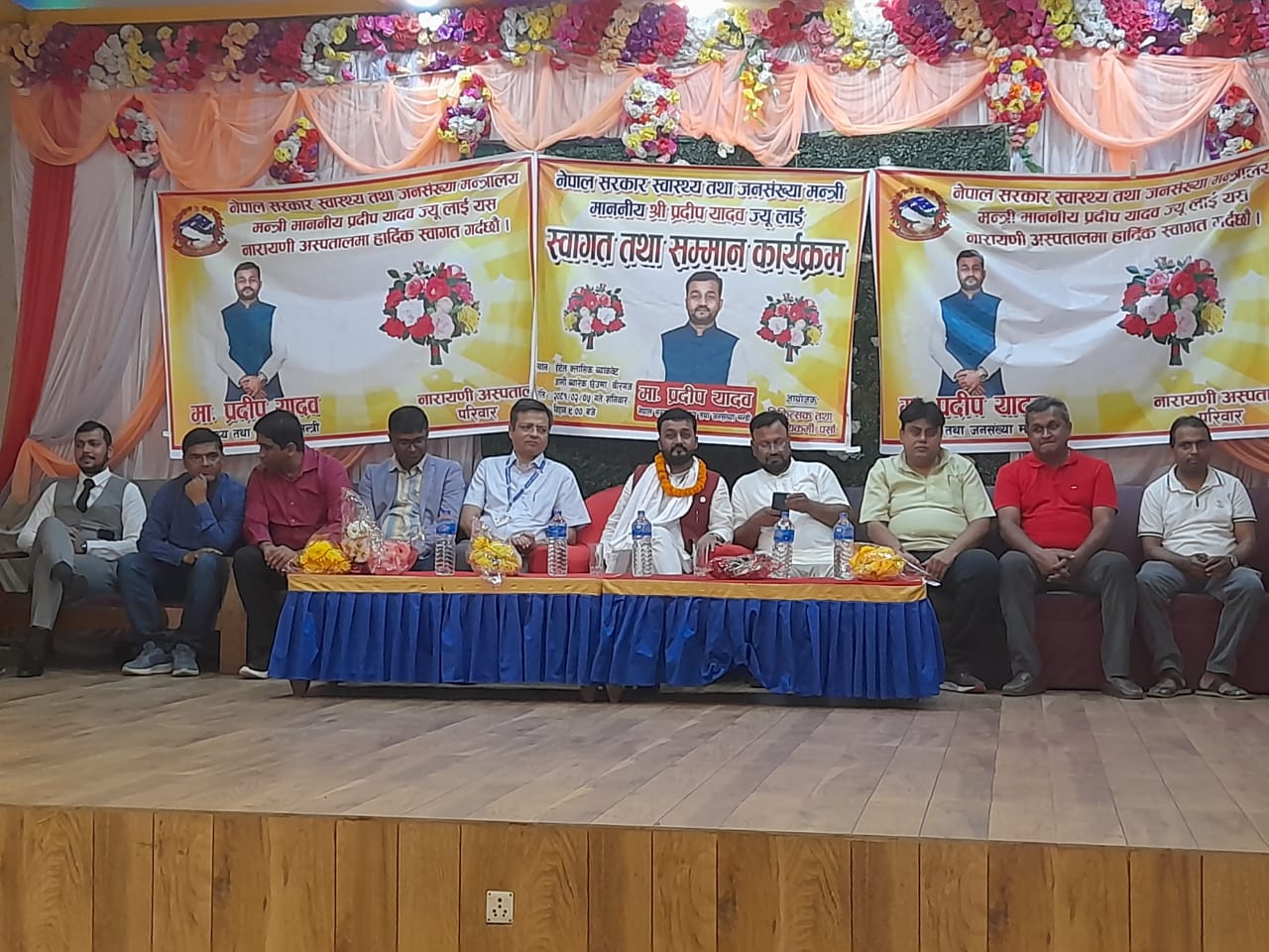 आफू मन्त्री भएको पाँच दिनमा मात्रै भएको र संघदेखि प्रदेश र स्थानीय तहसम्मका अस्पतालको अवस्थाबारे बुझिरहेको उनले बताए । मन्त्री यादवले स्वास्थ्य क्षेत्र सुधारका लागि सात वटै प्रदेशका स्वास्थ्य मन्त्री र स्थानीय तहका प्रमुख, उपप्रमुखसँग पनि छलफल गरेर अघि बढ्ने प्रतिबद्धता समेत व्यक्त गरे । स्वागत तथा सम्मान कार्यक्रममा वीरगंज महानगरका प्रतिनिधि, नारायणी अस्पताल र नेश्नल मेडिकल कलेजका चिकित्सक तथा स्वास्थ्यकर्मीहरुको सहभागिता रहेको थियो ।