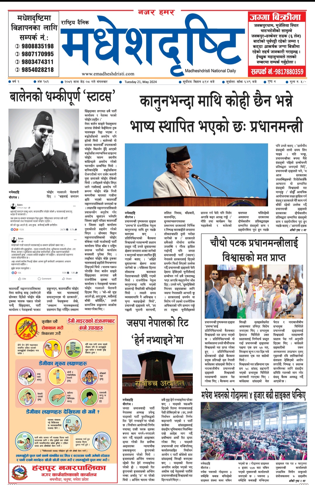 २०८१ जेठ ८ गतेकाे मधेशदृष्टि दैनिक