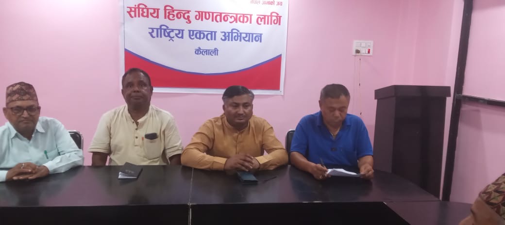 कैलाली जिल्लाको धनगढीमा हिन्दू पहिचान र सुशासनको लागि स्थापित राष्ट्रिय एकता अभियानले संघीय हिन्दू गणतन्त्र सम्बन्धी छलफल गरेको छ । स्थानीय सामाजिक अभियन्ता प्रभाकर भण्डारीको अध्यक्षतामा भएको कार्यक्रममा अभियानका केन्द्रीय अध्यक्ष विनय यादव लगायत अतिथि तथा वक्ताहरुको सहभागिता रहेको थियो ।