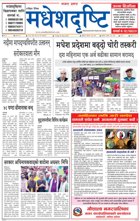 २०८१ जेठ ११ गतेको मधेशदृष्टि दैनिक