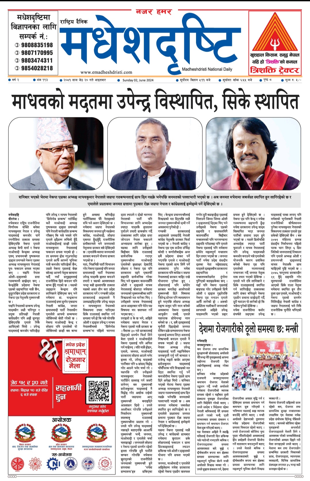 २०८१ जेठ २० गतेकाे मधेशदृष्टि दैनिक