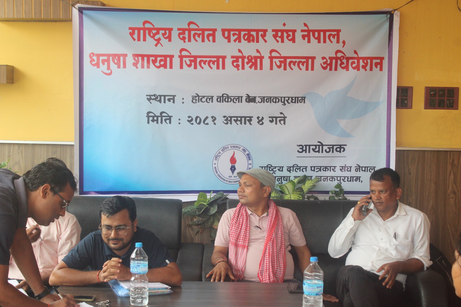 राष्ट्रिय दलित पत्रकार संघ नेपाल धनुषाको दोस्रो जिल्ला अधिवेशनले कुलदीप दासलाई पुनः अध्यक्षमा चयन गरेको छ । ९ सदस्य जिल्ला समितिको उपाध्यक्षमा मनोज पासवान, सचिवमा अशोक धन्कार र कोषाध्यक्षमा अनामिका मण्डललाई चयन गरेको छ । समितिका सदस्यहरुमा जितेन्द्र राम, ममता बैठक, निकी दास, नन्दनी दास कुमारी दास र सरोज राउत चयन भएका छन् । त्यसैगरी प्रदेश पार्षदमा राजेश सक्सेना, विरेन्द्र पासवान, र केन्द्रिय प्रतिनिधिमा कैलाश दास, रामएकवाल महरा चयन भएका छन् ।