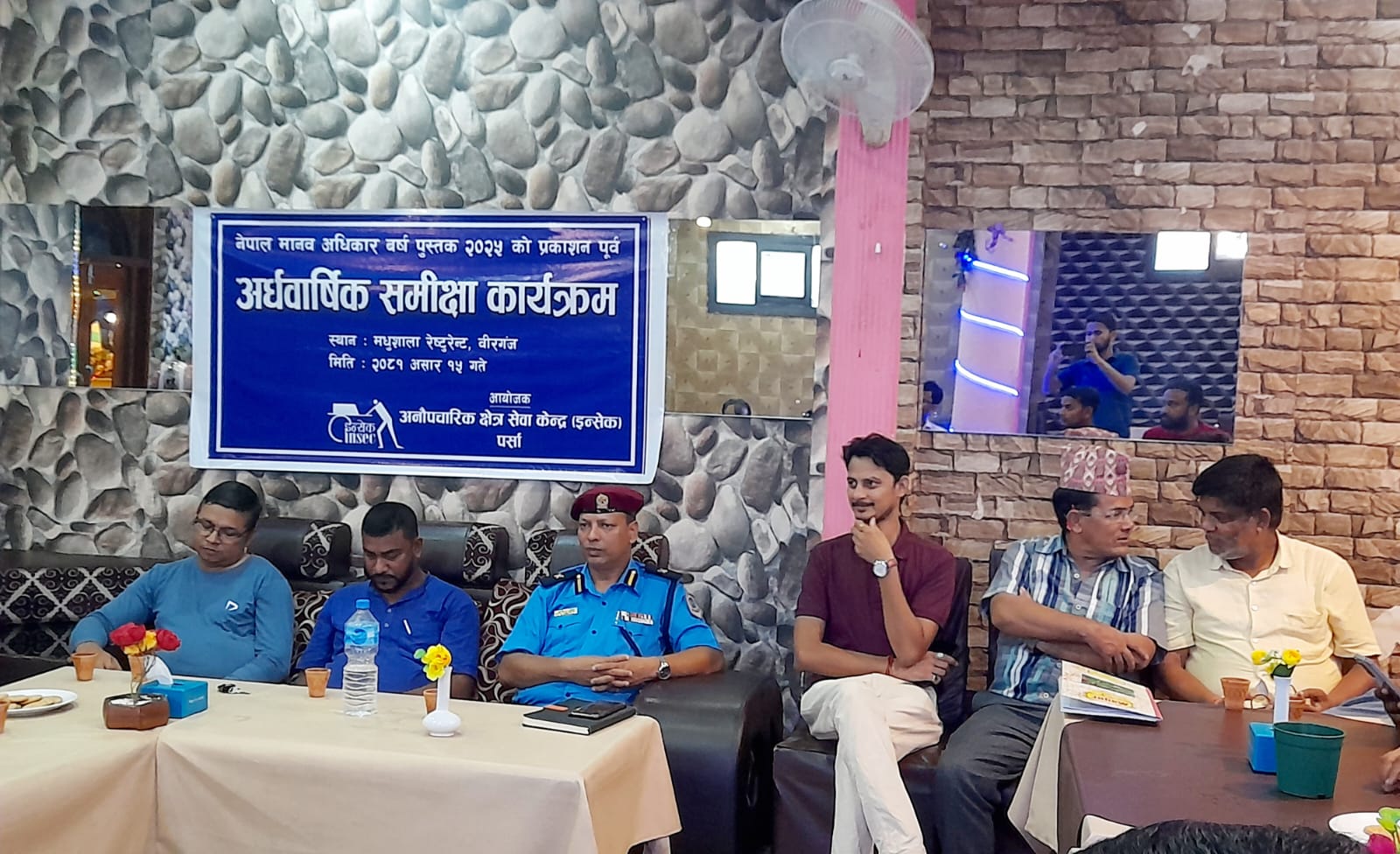 अनौपचारिक क्षेत्र सेवा केन्द्र (इन्सेक)ले ६ महिनाको अवधिमा पर्सा जिल्लामा मानवअधिकार उल्लंघनसम्बन्धी १४ वटा घटना भएको जानकारी गराएको छ । मानव अधिकार वर्ष पुस्तक २०२५ प्रकाशन पूर्व इन्सेक पर्साले गरेको अर्धवार्षिक समिक्षामा उक्त घटनाको बारेमा जानकारी गराएको हो । शनिबार वीरगंजमा आयोजित अर्धवार्षिक समिक्षा कार्यक्रममा इन्सेकले ६ महिनाको अवधिमा पर्सा जिल्लामा भएका मानव अधिकार उल्लंघनका घटनाहरुको अभिलेख सार्वजनिक गरेको हो ।